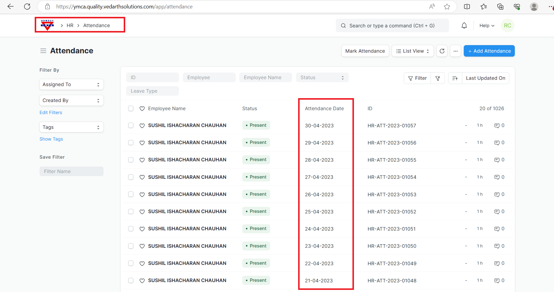 c] Attendance should be marked of an employee.